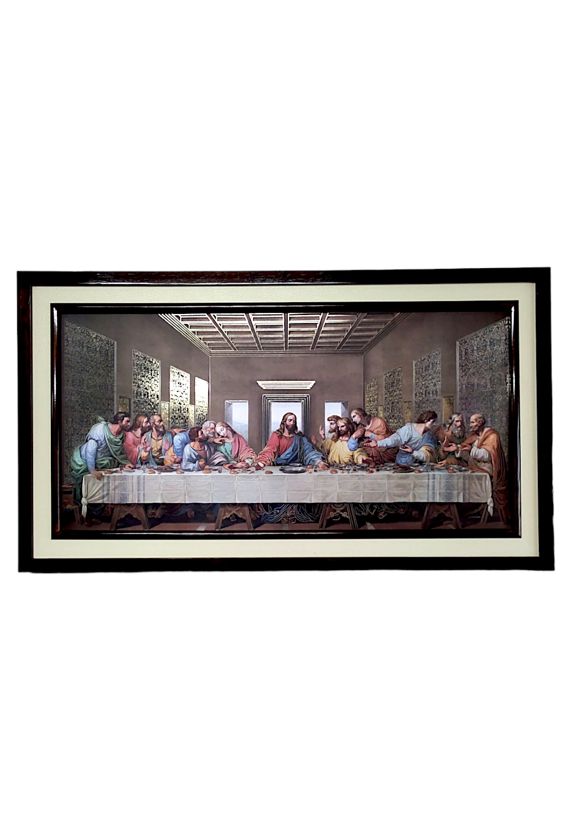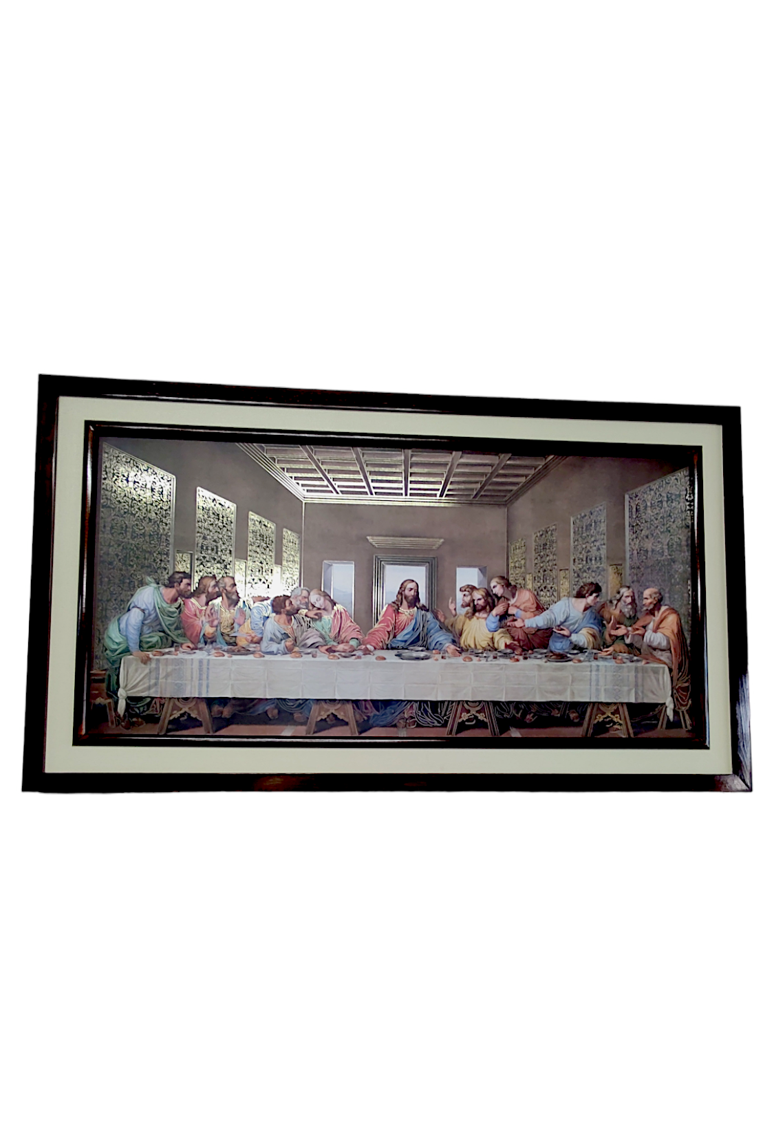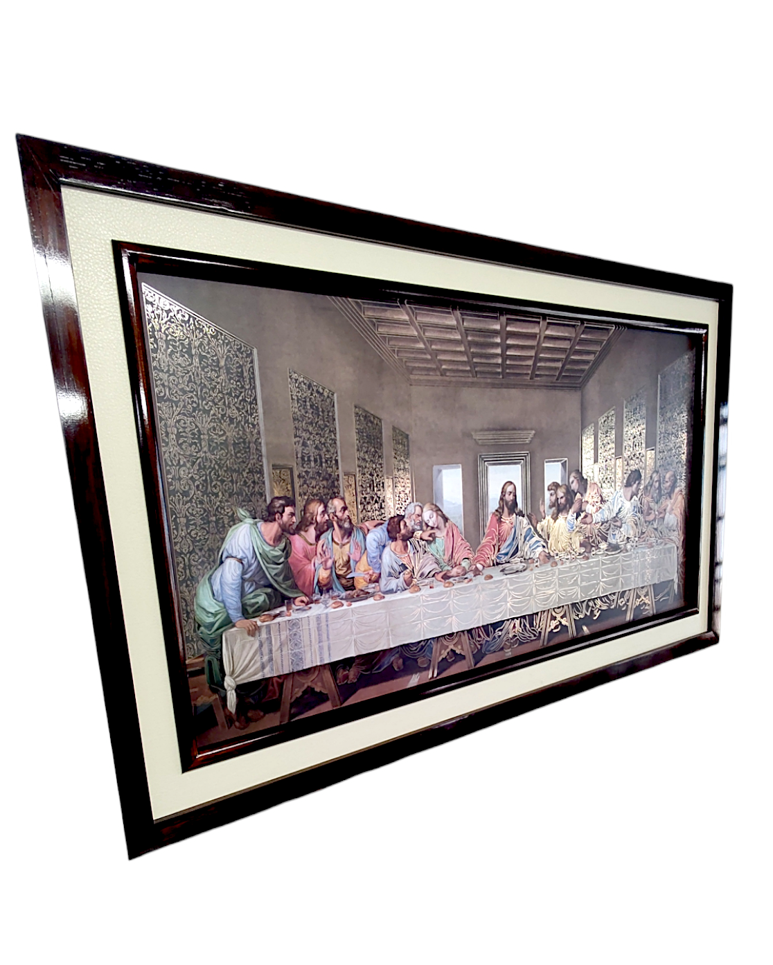 Cuadro Grande de Última Cena ( Detalles en dorado ) Marco Nogal con Yute Medida: 115 x 65 x 3.5
