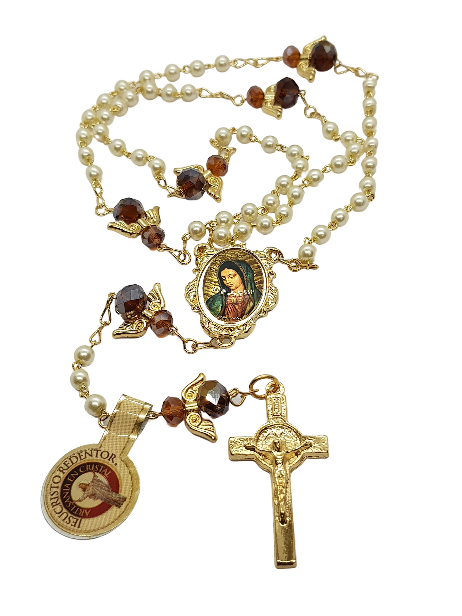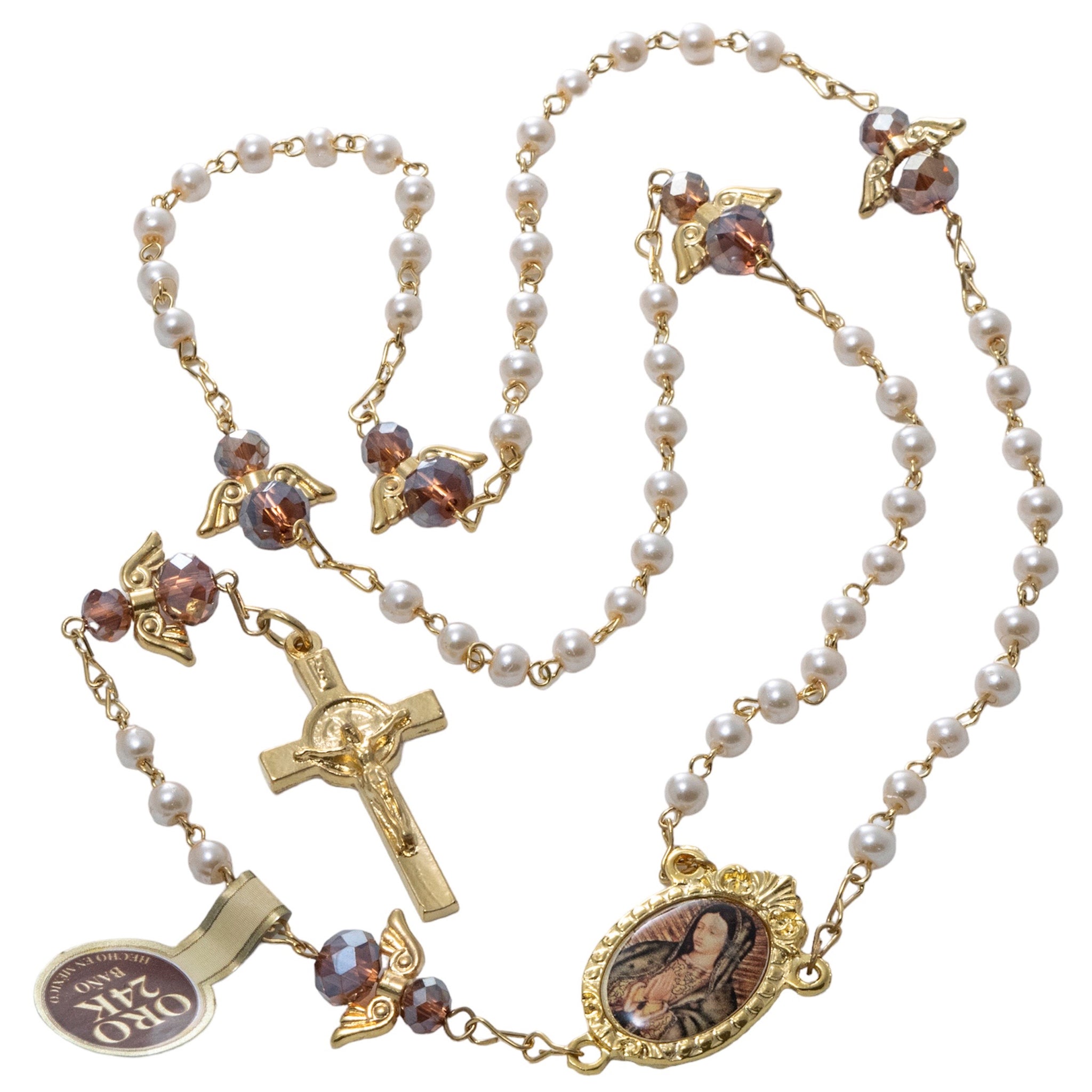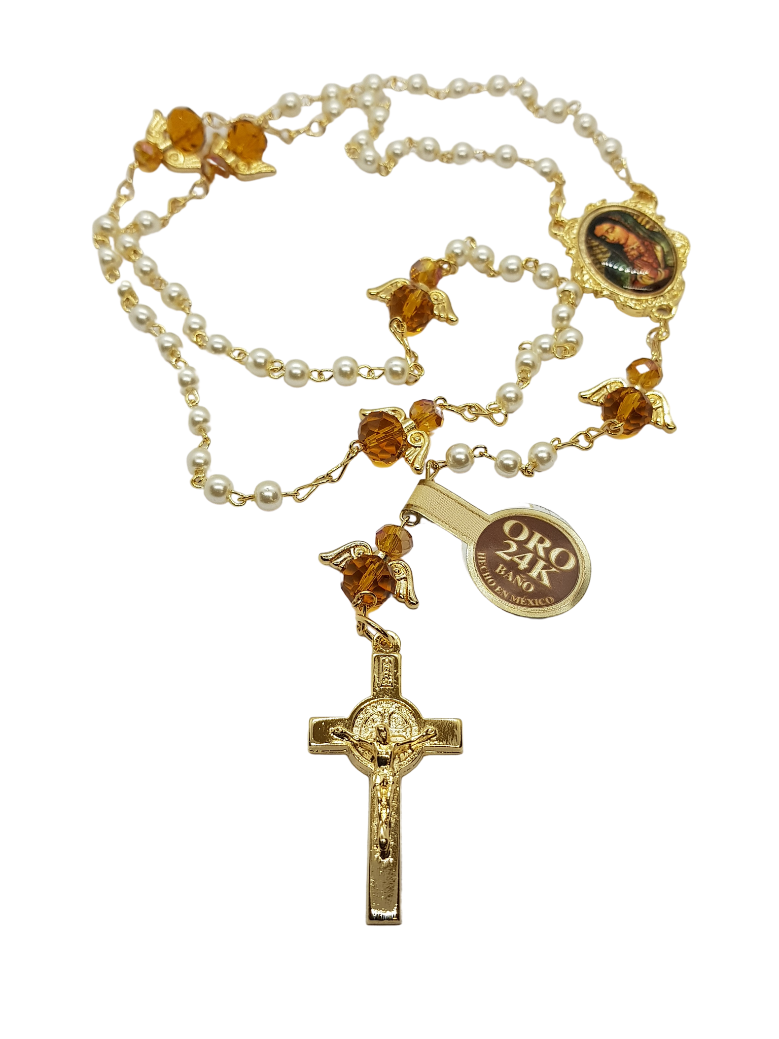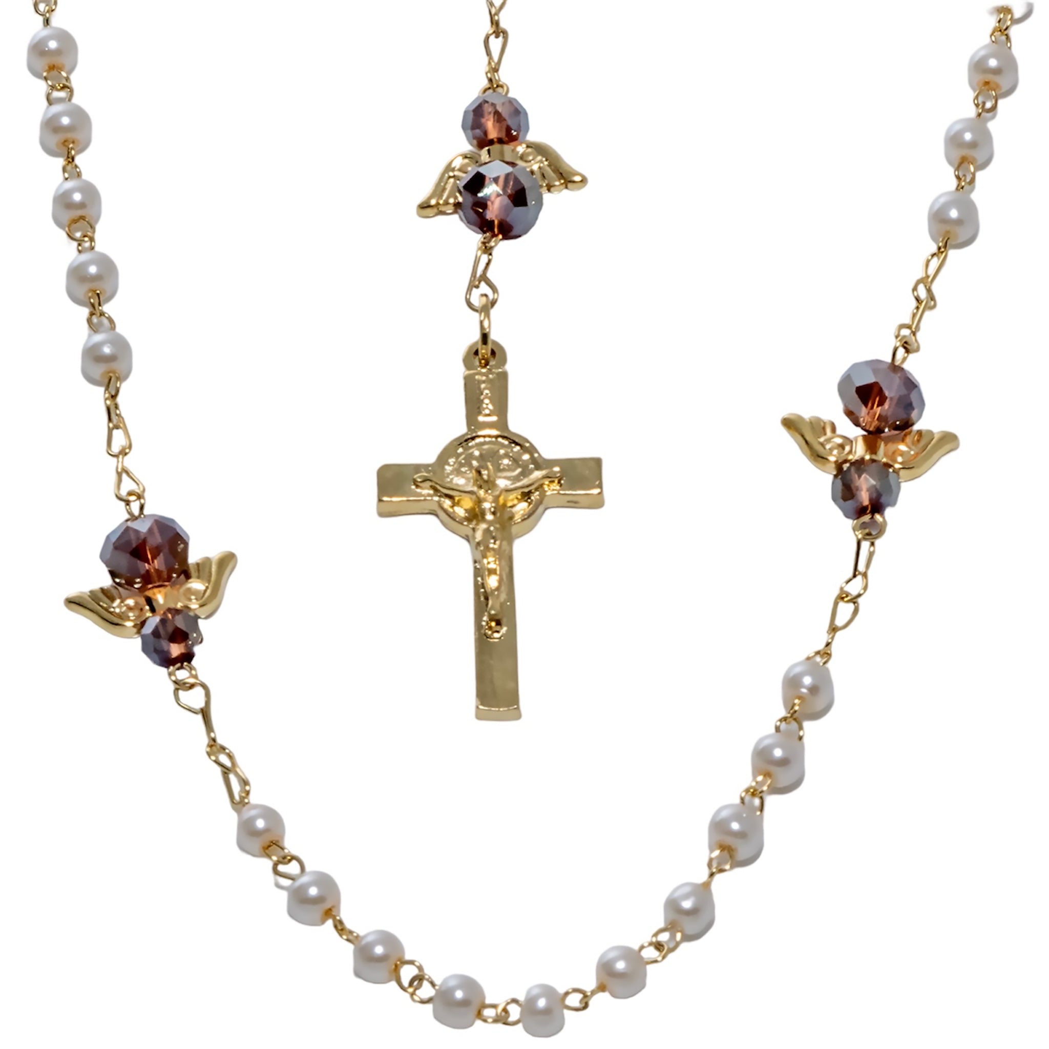 Rosario de perla con angelitos (baño de oro de 24 k)
