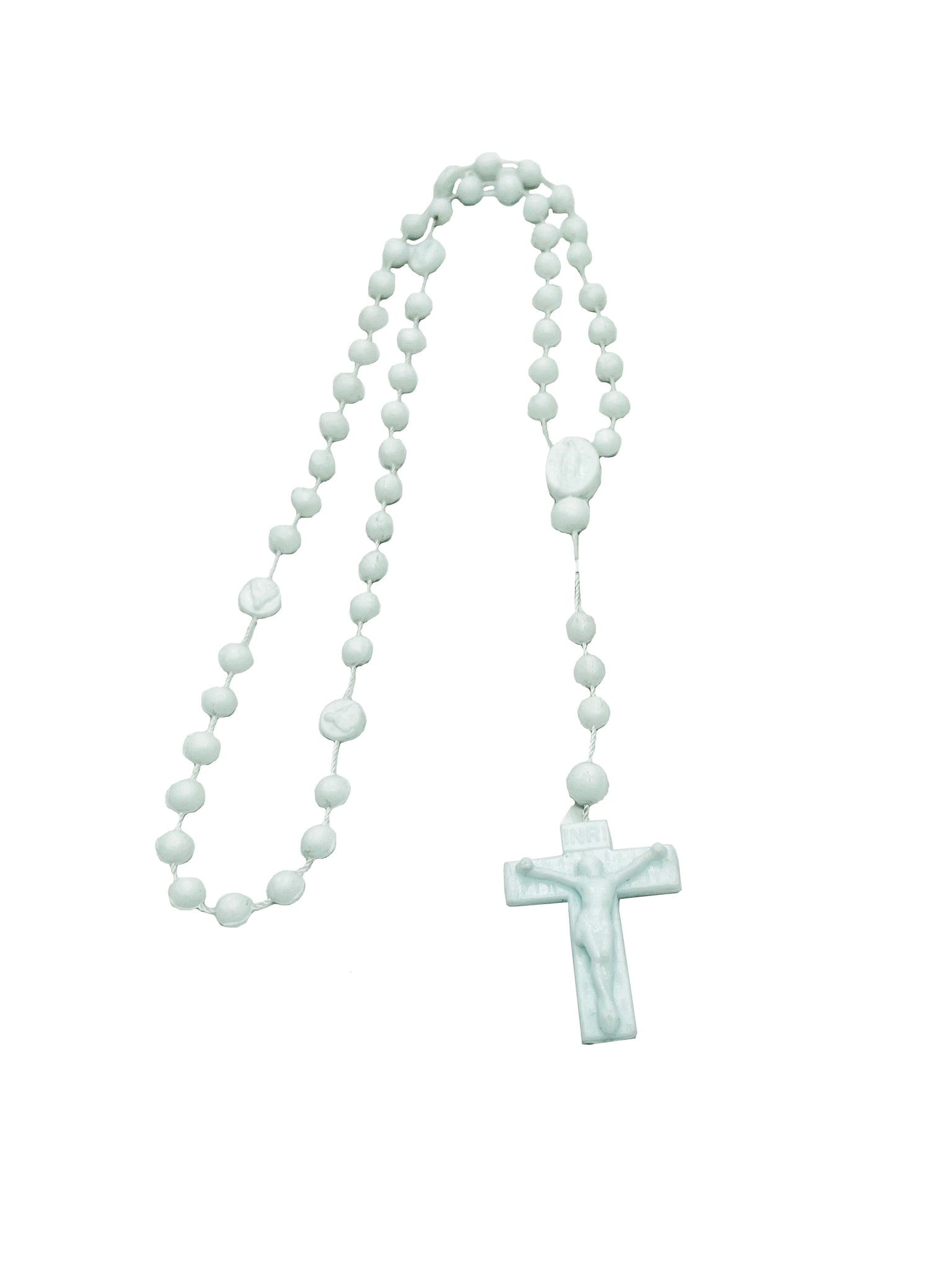 Paquete de Rosario Fosforecente paquete con 10 piezas colores rosa, azul , blanco y verde (PREGUNTAR POR LOS COLORES DISPONIBLES) excelentes para regalo o recuerdo medidas: 40 cm de largo contando la cruz medida de la cuenta 0.5 cm